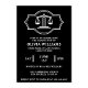 Eine elegante Jurastudium-Party Einladung. Mit den ikonischen Maßstäben der Gerechtigkeit, einem zeitlosen Symbol des Rechts. Das elegante Design in Schwarz-Weiß-Farbtönen. Perfekt für Jurastudenten. Die Vorlagen lassen sich leicht anpassen. Erhältlich als gedruckte Karten oder als Sofortdownload zum Senden auf Ihrem Handy.