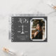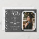 Feiern Sie den neuen Juris-Doktorand von der Juris-Schule mit dieser silbernen und grauen Anwalt Schuft Abschluss Ankündigung! Elegant mit einem Vintagen Foto und goldenen Konfetti Akzenten! Perfekt für jeden, der Jurastudium schließe!