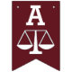 Abschluss der Juristenschule gratuliert Party Dekor mit Scales of Justice auf einem maronen Hintergrund.