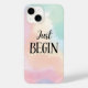 A gentle nudge to start where you are—this “Just Begin” quote design is set against a dreamy pastel watercolor background.