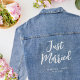 Feiern Sie den großen Tag mit dieser personalisierten Denim-Jacke! Mit dem Satz "Just Married" in einem stilvollen Skript-Schriftart kann diese Vorlage mit den Paarnamen, dem Hochzeitstermin, dem Ort oder jedem beliebigen Text, den Sie wählen, angepasst werden. Ein nachdenklicher und modischer Pfarrer wird Ihre Braut Liebe! Druckfarben: weiß auf blauem Denim.