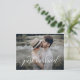 Nur heiraten! Mit diesem Foto Ankündigung Postcard verkünden Sie Ihre Hochzeit bei Familie und Freunden. Es verfügt über handgeschriebene Skriptüberlagerung, Herz und einfache Typografie. Personalisieren Sie diese durch Hinzufügen von Namen, Datum, Ort und Nachricht. Dieses Skript Just Married Postcard ist auch perfekt für Erweiterungen.