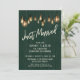 Just Married Dark Green Wood Edison Lights Einladung