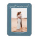 Einfache und elegante staubblaue "Just Married" Hochzeitsankündigung Magnetkarte. Bearbeiten Sie diese, um Ihr eigenes Foto hinzuzufügen.