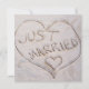 Candid écrit à la main "Just Married" faire-part mariage. Idéal pour ceux qui aiment les mariages tropicaux et veulent faire savoir à leurs proches qu'ils ont été piqués !