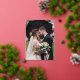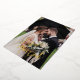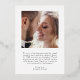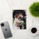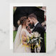 Elégante et moderne carte de faire-part mariage avec police en lettres de la main qui dit "Juste marié" au-dessus de votre photo avec de vraies empreintes de papier peint. Ajoutez 2 photos à l'avant et à l'arrière avec un message.