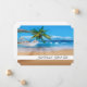 Just Married carte photo montré avec une photo d'une belle plage à Hawaii avec des exemples personnalisés de noms montrés, customisez cette carte et changez la photo à la vôtre, changez le texte à la vôtre, vous pouvez même mettre un message à l'arrière. Ou acheter comme indiqué.