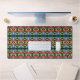 Kinetic Collage Special Effects generates this mind bending design from a parallel universe that is extraordinarily symmetrical. This desk mat will transform your workspace into an exotic mind expanding experience. Similar to the currently trending “Ikat” style, this design blends abstract art, technology and psychedelia in a completely unique fashion. The origination image is from my Kinetic Collage legacy psychedelic light show photos. Subsequent image manipulation yields the formal balance of the final composition. Thus from chaos comes balanced order. Much like your own work experience. To fully appreciate Kinetic Collage, a live performance should be experienced. For a taste, check out my postings at http://www.youtube.com/user/kineticcollage…Please note: If you wish to have any Zazzle product imprinted with one of my arts, let me know your preferences and I’ll make it happen. kineticcollage@cox.net