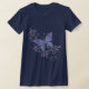 Eleganter und stilvoller Schmetterlingsentwurf: mit Blumen wie Wirbel und ein Schmetterling mit Seide ähnlichen Flügeln in den Schatten von Blauem und von Flieder, verziert mit glänzenden Juwelen, Set auf einem Hintergrund des dunkelblauen Damastes.