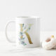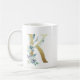 K Golden Initial mit blauem Blumenblättern Kaffeetasse