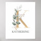 Letter K monogramm floral. Letter K in goldbrauner Textur mit grünen Aquarellfarben Blätter und Beeren und Goldstaub. Personalisiert mit Namen in passendem Schriftart.