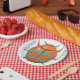 Der Käfer ist orange und türkis. Eine niedliche Insektenpapiertafel für das Party eines Jungen. Personalisieren Sie, wenn Sie möchten.