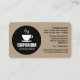 Eine Visitenkartenvorlage, die im Sinne des Caterings erstellt wurde. Ein einfacher, aber aufmerksam schnapper schwarzer Kreis in der Mitte der Vorderseite mit einem generischen Kaffeetassen-Symbol/Logo (das auch durch Ihr eigenes Logo ersetzt werden kann) Firmenname und Geschäftstyp darunter. Auf der Rückseite der Karte befindet sich das gleiche schwarze Kreissymbol, das mit einer Wiederholung des Logos, des Firmennamens und des Geschäftstyps im Inneren der links Seite ausgerichtet ist. Öffnungszeiten und andere Kontaktdaten sind rechts ausgerichtet. Hinweis: Diese Vorlage hat keinen Kontaktnamen und keinen Jobtitel, da sie eher wie ein Mini-Flyer für ein Café oder Restaurant funktionieren soll als für eine Einzelperson oder einen Mitarbeiter des Unternehmens. Diese Version enthält auch Öffnungszeiten. Diese einfache, aber vielseitige Vorlage ist fertig, um mit Ihren Daten individuell oder zusätzlich angepasst werden zu können.