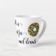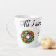 "Alles, was ich brauche, ist Kaffee und Donuts" in extravaganter Dame Liebe Skript. Dieses typografische Design ist mit 2 SchokoladenDonuts mit Regenbogensprinklen gepaart.