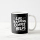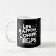 Beginnen Sie Ihren Tag mit Spaß und Stil! Dieses mutige typografische Design zeigt das Zitat "Leben geschieht, Kaffee hilft" auf einem schwarzen Hintergrund. Es ist perfekt für Kaffeeliebhaber geeignet und verbindet lustiges Ambiente mit modernem Stil. Eine lustige Kaffeegenießerie und eine coffeful Tasse lustig muss haben!