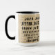 Der Hintergrund auf dieser Tasse ist ein sehr alter 1840'seigentumsbrief oder ein Teil von ihm als hoher dpi Scan. Die Wörter im Schwarzen sind ungefähr 20 Jargonnamen für Kaffee. Er erhält das kreative Saftfließen.