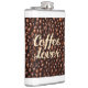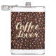 Eine regale Verkündigung der Kaffee-Liebe. Die Phrase "Coffee Lover" ist in kühnen, königlichen Schriften geätzt, die an alte Inschriften erinnern. Die Buchstaben heben sich vor dem Hintergrund von reichen, dunklen Kaffeebohnen ab und schaffen eine visuell atemberaubende und aromatische Komposition. Das Bild ruft ein Gefühl von Luxus, Genuss und die tiefe Wertschätzung für das einfache Vergnügen einer Tasse Kaffee hervor.