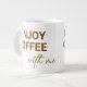 Eine Kaffee-Tasse im Jumbo-Stil mit einem schicken, minimalistisch braunen Sprichwort "Enjoy Coffee With Me". Das Design ist anpassbar, inklusive Textinhalt und Farbe. Wählen Sie dazu einfach die Schaltfläche "Dieses Design bearbeiten" und bearbeiten Sie Ihre Bearbeitung im Bereich Editing.