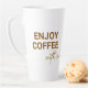 Eine latte Kaffee-Tasse mit einem schicken, minimalistisch braunen Sprichwort "Enjoy Coffee with Me". Das Design ist anpassbar, inklusive Textinhalt und Farbe. Wählen Sie dazu einfach die Schaltfläche "Dieses Design bearbeiten" und bearbeiten Sie Ihre Bearbeitung im Bereich Editing.