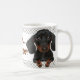 Eine themed trinkende Tasse der Dackel, ein ideal für den Dackelinhaber oder für Leute, die gerade Dackeln verehren! Die SchalenAusrüstungsbeschreibungen zwei malten Bilder der niedlichen Dackelwelpen mit dem Text "Mmm… Kaffee!".