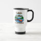 Ein niedliches Bild eines Sees mit einem Fischerboot, das an der Anlegestelle befestigt ist, mit dem Titel Cabin Coffee schmeckt besser; das macht die perfekte Kaffee-Tasse für die Kabine oder das Ausgehen auf dem Boot.