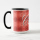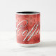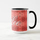 Flower coral, farbige schwarze Blumen-Designer-Tasse, personalisieren Sie die weiße Blume zu Ihrer eigenen Farbwahl. Der Kaffee-Text kann in einen Namen geändert werden, oder Text kann entfernt werden.