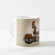 Beginnen Sie Ihr Morgenrecht mit dieser Vintagen Motorradarmeeart Pinup-Kaffee-Tasse, welche die Button-oben Kunst von Sean Earley kennzeichnet