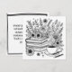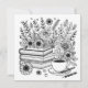 Niedliche Erwachsenenkarte. Ein Stapel Vintager Bücher, Blume und eine Tasse Kaffee mit einer süßen unterstützenden Botschaft auf der Rückseite, die Sie personalisieren können.