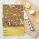 Muster mit Kaffeetassen, Blume und Croissants auf braunem Hintergrund