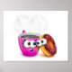 Ein niedliches Design für einen heißen Kaffee und einen Donut zusammen. Sowohl die Kaffeetasse als auch der Donut haben Augen und starren sich an. Dieser heiße Kaffee und das Donut-Design sehen auf diesem Poster großartig aus