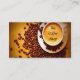 Diese Visitenkarte kennzeichnet ein digital erhöhtes Bild einer Kaffeetasse, die durch Kaffeebohnen umgeben wird. Aller Text kann besonders angefertigt werden, wie gebraucht worden.