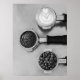 Dieses Poster aus schwarz-weißer Kaffeefotografie erfasst die ganze Reise einer perfekten Tasse, von gerösteten Bohnen bis hin zu frischen Plätzen und schließlich einer kunstvoll gearbeiteten Latte. Die minimalistische Komposition und monochrome Farbtöne schaffen ein modernes, stilvolles Aussehen, in dem sich Anzüge, Küchen, Cafés, Kaffeebars oder andere Orte treffen, in denen sich Kaffeeliebhaber treffen. Ideal für die Wohngestaltung oder als nachdenkliches Geschenk für Baristas, Espresso-Fans oder alle, die das Ritual des Kaffees schätzen, fügt dieser Ausdruck Wärme und Eleganz zu Ihrer Wand hinzu.