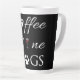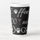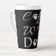 Die perfekte Tasse für diejenigen, die Kaffee, Wein und Hunde Liebe haben. Das Design der Latte Tasse enthält einen extravaganten Text für den Kaffee mit einem Kaffeetassen-Dekor für den Buchstaben "o", Wein mit einem Rotwein für den Buchstaben "i" und Hunde mit einem Pfotendruck anstelle des "o". Auch zusätzliche Geschenkartikel sind in diesem Design erhältlich.