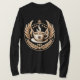 T - Shirt-Design mit einem Bild eines militärischen Insignien eines Kaffeekommandeurs, mit einer dampfenden Kaffeetasse mit verzierten Flügeln und Sternen, die ihn umgeben.