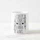Liebe Pflege dann Karo aus diesem lustigen Design, das Kaffee-Skrupel und Gummihandschuhe sagt. Dieses Design sieht auf dieser Tasse wirklich effektiv aus