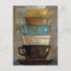 © Silvia Vassileva / Wilder Apple. Kaffeetassen, die in Erdfarben aufeinander gestapelt sind. Das Wort Latte kann oben auf dem Bild angezeigt werden.