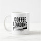 Dieses lustige Kaffeedesign beinhaltet ein Bar und das Zitat "Kaffeeladen. Bitte warten."