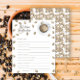 Wasserfarbene Kaffeebohnen und Tasse Kaffee und Bohnen Muster. Kaffee brauende Babydusche. Kaffeemaschine mit Babydusche. Text mit Kaffee-Ring und mit Kaffeebohnen und Tasse Kaffee.
