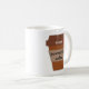 Diese Tasse zeigt eine braune Kaffeetasse mit dem Text "Krankenschwester - powered by coffee". Es gibt ein rotes Kreuz neben "Krankenschwester".
