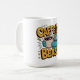 Niedliches lustiges Monster mit einer riesigen Kaffeetasse.