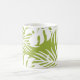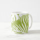 Schöne hellgrüne Farbe der Kaffeetasse mit Blattdruck.