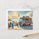 Perfektes Geschenk für den Reise- und Kaffeeliebhaber. Die Aquarellmalerei erfasst lebhaft einen kleinen Kaffee verkaufenden Nahrungsmittelwagen von Ocean Beach in San Francisco. In lebhaften Farben mit künstlerischen Wandmalereien bemalt, hebt sich der LKW vor dem Hintergrund des riesigen Ozeans und Sandstrandes ab. Umgeben von den farbenfrohen Schirmen und den provisorischen Sitzecken bieten sich die Gäste in Strandbekleidung lässig an, um ihre Getränke zu genießen. Die Szene ist lebhaft und entspannt, voller Leute, die sich vermischen und die frische Meeresluft genießen. Das Gemälde verbindet die sanften, gedämpften Farben des Morgenhimmels mit den lebhaften Farben des LKW und der natürlichen Meereslandschaft und schafft so eine malerische und einladende Atmosphäre.