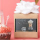 Ein Kalkbrett im Hintergrund sagt "Kaffeezeit" mit einem Smiley, geschrieben in Kreide. vorne auf einem rustikalen Holztisch ist eine Kaffeemaschine mit einem Diamantenmuster-Design in Schwarz-Weiß. Neben der Kaffeetasse sitzend eine Kaffeekanne mit großem Filter und einer frisch gebrühten Kaffeekanne. Sieht rustikal und alt aus.