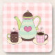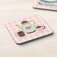 Rosa und weiße karierte Untersetzer mit hübscher Grafik von zwei Tassen Kaffee und einer farbenfrohen Kaffeekanne. Großartiger Untersetzer für jedes Zimmer des Hauses. Anpassen, um jeden gewollt Text hinzuzufügen. Tolle Geschenkidee.