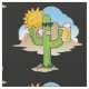 Cartoon von lächelnden Kakteen mit Sonnenbrillen in der Wüstenlandschaft, die eine Bierkaktus halten und Daumen geben. Benutzerdefinierte Hintergrundfarbe.