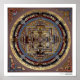 A propos de Mandalas Mandala est un mot sanskrit qui signifie "cercle". Dans les traditions religieuses bouddhiste et hindoue, leur art sacré prend souvent la forme d'un mandala. La forme de base de la plupart des mandalas hindous et bouddhistes est un carré avec quatre portes contenant un cercle avec un point central. Chaque porte est en forme de T. Ces mandalas, diagrammes concentriques, ont une signification spirituelle et rituelle dans le bouddhisme et l'hindouisme. Le terme est d'origine hindoue, mais il est également utilisé dans le bouddhisme. Dans la branche tibétaine du bouddhisme vajrayana, les mandalas ont été développés en peinture de sable. Dans diverses traditions spirituelles, les mandalas peuvent être utilisés pour concentrer l'attention des aspirants et des adeptes, comme outil d'enseignement spirituel, pour établir un espace sacré, et comme aide à la méditation et à l'induction de la transe. Sa nature symbolique peut aider à accéder progressivement à des niveaux plus profonds de l'inconscient, en fin de compte aider le méditant à éprouver un sens mystique de l'unité avec l'unité ultime d'où provient le cosmos dans toutes ses formes multiples Le psychanalyste Carl-Gustav Jung a vu le mandala comme "une représentation du moi inconscient". En usage courant, mandala est devenu un terme générique pour tout plan, graphique ou motif géométrique qui représente le cosmos métaphysique ou symboliquement, un microcosme de l'Univers du point de vue humain. Le Kalachakra est un terme sanscrit utilisé dans le bouddhisme tantrique qui signifie littéralement "roue du temps" ou "cycles temporels". La tradition de Kalachakra s'articule autour du concept du temps (kala) et des cycles (chakra) : des cycles des planètes aux cycles de la respiration humaine, elle enseigne la pratique de travailler avec les énergies les plus subtiles dans son corps sur le chemin de l'illumination. L'actuel Dalaï Lama a donné trente initiations Kalachakra dans le monde entier, et est le plus important détenteur de la lignée Kalachakra vivant aujourd'hui. Qualifiés de "Kalachakra pour la paix mondiale", ils attirent des dizaines de milliers de personnes. En général, il est rare que des initiations tantriques soient données à de grands assemblages publics, mais le Kalachakra a toujours été une exception. Le Dalaï Lama et d'autres ont déclaré que l'exposition publique de ce tantra est nécessaire à l'âge de dégénérescence actuel. Le mandala de sable Kalachakra est dédié à la fois à la paix individuelle et mondiale et à l'équilibre physique. Le Dalaï Lama a expliqué que "c'est une façon de planter une graine, et la graine aura un effet karmique. Il n'est pas nécessaire d'être présent à la cérémonie de Kalachakra pour en bénéficier."