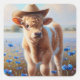 Kalb mit Cowboy-Hut in Weide Quadratischer Aufkleber