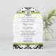 Vintage Moderne Noir et Blanc Motifs de Damas Floral avec Apple Green Trim Wedding Invitations. Parfait pour Rococo Baroque, Renaissance médiévale, Art Déco Art Nouveau, Roaring 20s Gatsby, Mariages victoriens ou Elégant Farmhouse Mariage lieux thématiques.