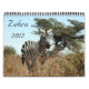 Photographischer Kalender, der zwölf atemberaubende Bilder von Zebra in den wilds von Kenia kennzeichnet. Völlig kundengerechter Kalender - macht das perfekte Geschenk.