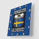 California Swedish American Clock. Das kalifornische schwedische Design im Stil eines coolen amerikanischen Wegweises. Der Text California Schwedisch ist oben und unten, mit der Flagge des Staat von Kalifornien und der Flagge von Schweden im Zeichen der Route. Ideal für Kalifornier schwedischer Abstammung und für Ex-Pats in der Republik Kalifornien!
